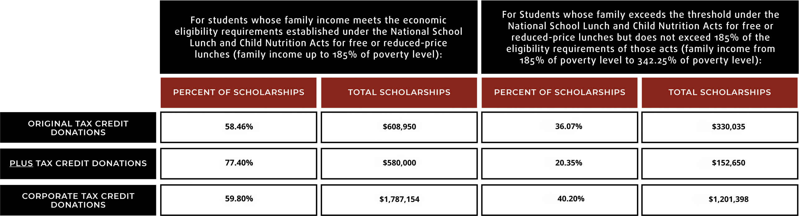 As Reported to the Arizona Department of Revenue 2024-2025, Tuition Awards Paid From Brophy Community Foundation Break Down as Follows: